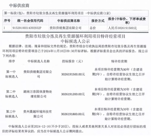 近日,贵阳市垃圾分拣及再生资源循环利用项目中标候选人公示结束,贵阳供销集团有限公司以约30.26亿元的投标报价成为第一中标候选人。该项目的特许经营期限为30年,这中间还包括2年的建设期。 项目概况与投资规模 贵阳供销集团有限公司成立于2014年7月,注册资本87368万元,是贵阳市供销合作社联合社的全资子公司。项目总投资额为391432.25万元,其中12座综合分拣中心的建设费用为67369.94万元,30年特许经营权使用费为302619.10万元。 项目计划在贵阳市全域14区县(10区县4功能区)及贵安新区直管区建设,形成总占地面积不低于513.03亩,年分拣能力不低于256.51万吨的再生资源综合分拣中心(集散交易中心)。同时,项目还将搭建贵阳贵安再生资源循环利用信息化平台,构建贵阳贵安再生资源循环利用体系。 回报机制与收益形成 特许经营单位将自担风险、自主经营,通过回收废钢铁、废有色金属、废纸、废玻璃等可回收再生资源得到的出售的收益,聚焦使用者付费,通过使用者付费的收入,覆盖建设成本,平衡建设经营成本费用及实现合理利润。 供销社的再生资源回收利用业务 作为计划经济体制的时代产物,供销社在中华人民共和国成立初期扮演着举足轻重的作用。随着市场经济体制的建立,供销社在商品供应方面逐渐被个体商店、小超市取代。然而,随着再生资源风口的释放,供销社重新崛起,成为再生资源回收利用的主力军。 国家发展改革委副主任赵辰昕在2024年4月的国务院政策例行吹风会上表示,力争全年推动全国大中城市新增标准化规范化回收站点2000个,其中供销系统1000个。多地政府发布的《推动大规模设备更新和消费品以旧换新行动方案》中,明确将供销合作社作为主要责任单位参与废旧产品设备回收网络建设,全方面提升资源再生利用水平。 截至2023年,供销合作社系统共拥有800多家再生资源全资控股企业和3.5万个回收网点,成为再生资源万亿市场的扛旗者。